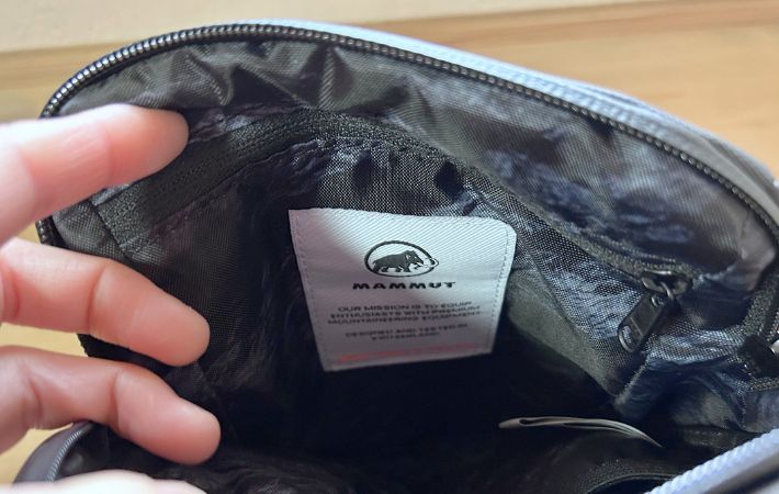 バッグの中にアクセスすると『マムート』のロゴのタグが目に飛び込んできます。