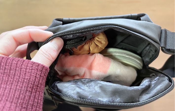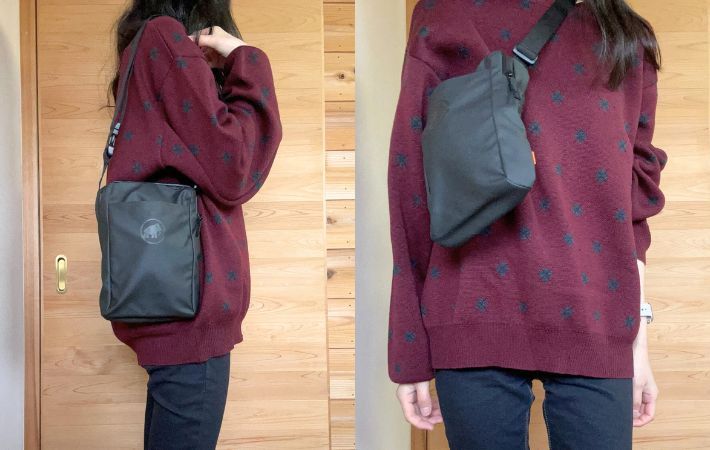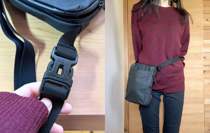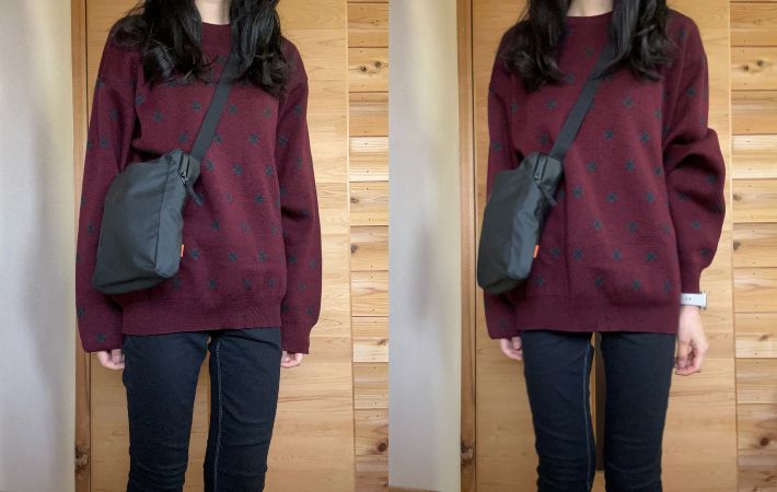 この使い方が合っているのかは分かりませんが、ウエストポーチのように身につけられるのも魅力だと思いました。