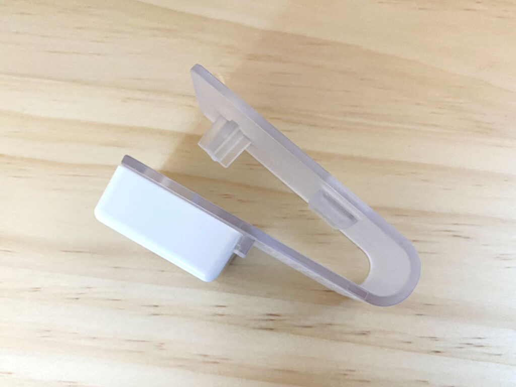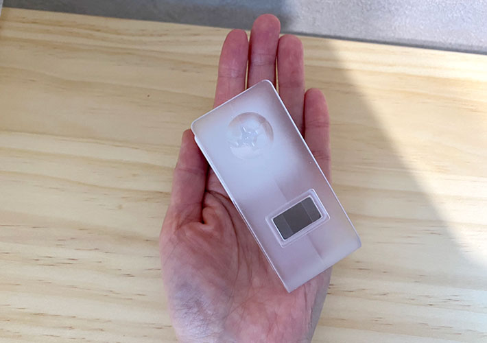 実物がこちら。幅8cm×奥行き3.5cm×高さ5cmほどと手のひらに乗る程度のサイズ感で、デザインもすっきりとシンプル。
