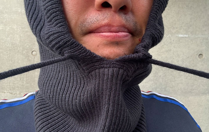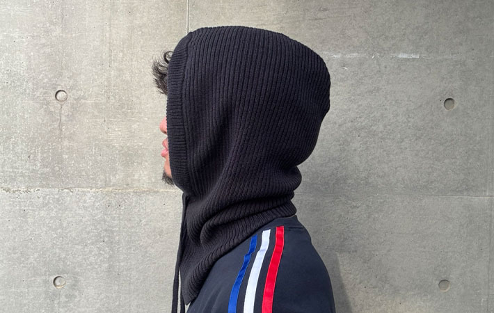 バラクラバとは、頭部から首元にかけて全体的に覆うことができる防寒具で、パーカーのフードのような形状をしています。