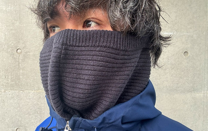 着用方法はシンプルで、ネックウォーマーやニット帽のように被るだけ。