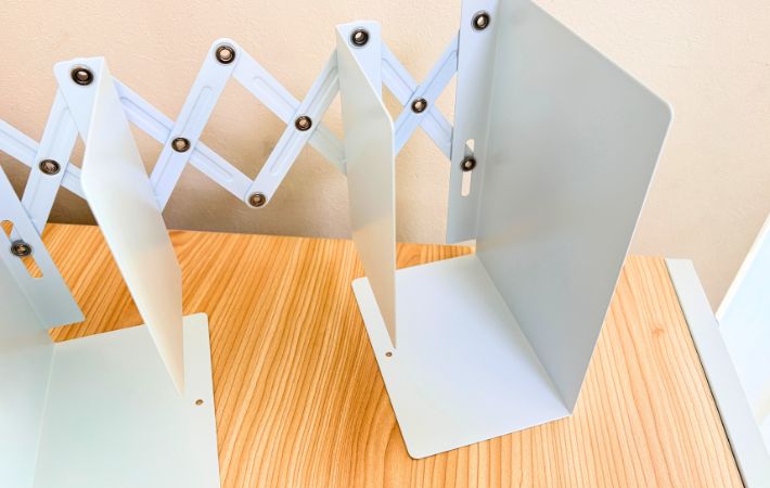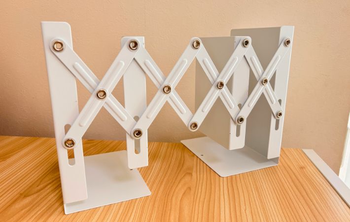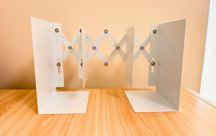 冊数に合わせて伸縮できるので、その都度ブックエンドを動かす必要がなく、本や書類が崩れるストレスが大幅に減ります。