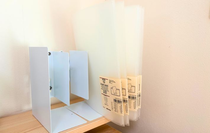 意外と嬉しかったのが、クリアファイルのような薄くて滑りやすいものもきちんと立てかけられること。