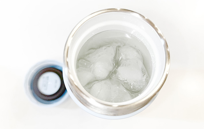 キンキンに冷えた氷水を入れた後、蓋をしてそのまま6時間放置してみました。