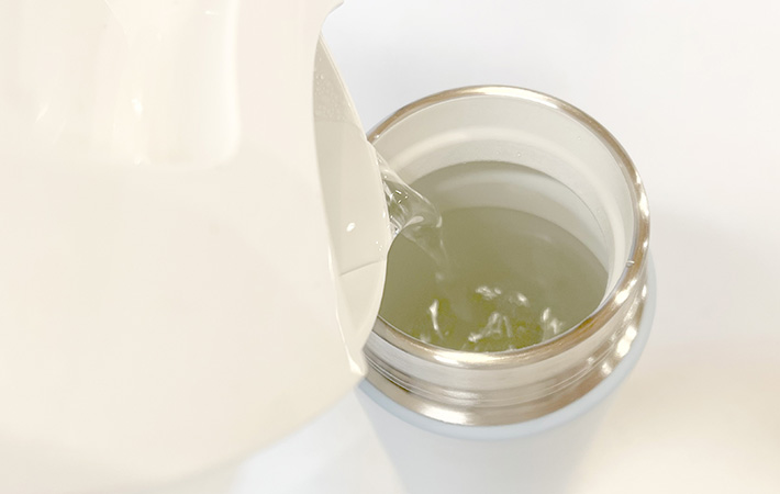 電気ケトルで沸かしたばかりの熱湯を、本体に注いでいきます。先ほどと同様、すぐに蓋をして6時間後の様子を見ていこうと思います。