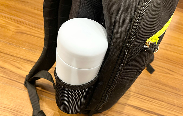 ご覧の通り、キッズリュックのサイドポケットにもするりと収まりました!