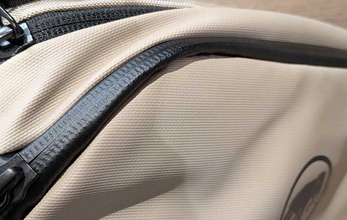 ジッパー部分も止水ファスナーが使われているため、急な雨が降ってきても貴重品が濡れてしまうことはないでしょう。