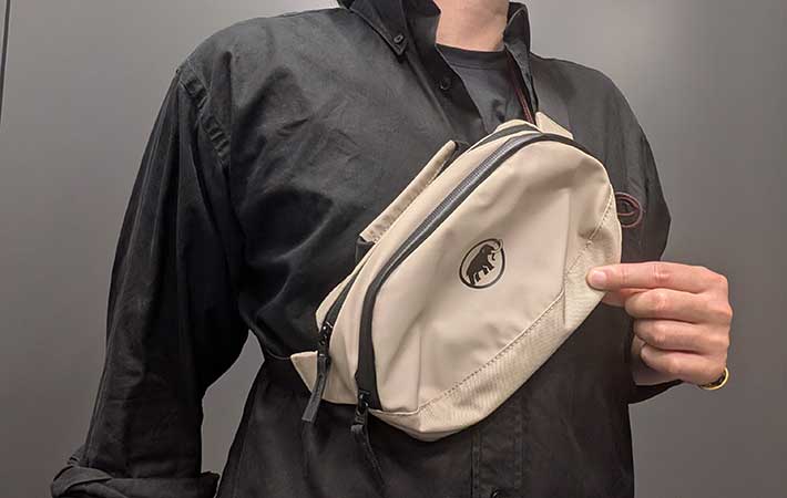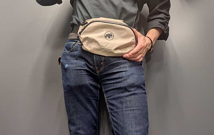 マムートのセオンウエストパックは、大きすぎず小さすぎず、性別を問わず使いやすいサイズ感が人気の理由の1つ。