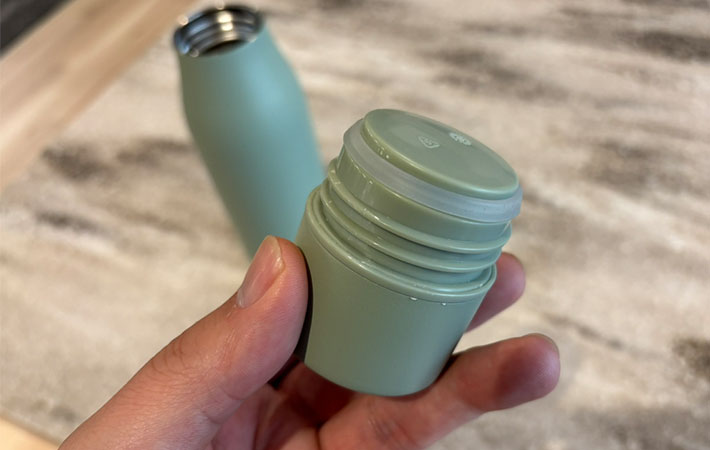 前述の通り真空断熱構造になっているため、お湯を入れた直後でも持つ手が熱くならないこともポイントの1つ。全体的に使いやすいアイテムという印象を持ちました。