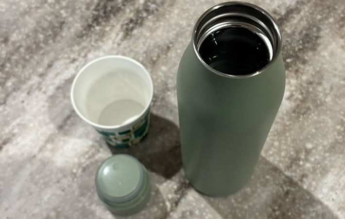 『断熱ステンレス製ウォーターボトル 591ml』の保温力は70℃以上のお湯を6時間ほど、そして保冷力は7℃以下の水を同じく6時間ほどキープできるといいます。