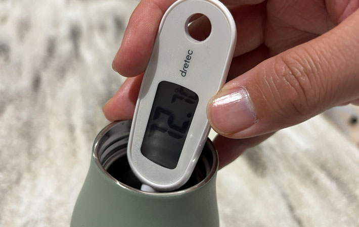これ1本で年中イケそう! 見た目もオシャレな大容量ウォーターボトルの性能を検証 ホーム・キッチン By - akira 更新:2026-01-29 ※本記事はUPDATEが独自に制作したコンテンツです。また、本記事を経由して商品の購入が発生した場合に、ECサイト等から送客手数料を受領することがあります。 職場や学校などに、水筒を持参している人は少なくありません。 一口に水筒と言ってもタイプはさまざま。筆者は普段コンパクトサイズのものを使っていますが、そろそろ大容量タイプのものも気になってきました。 そんな折、Amazonのプライベートブランド『Amazonベーシック』商品担当者の方から、あるものをご提供いただけることに。 それが、『断熱ステンレス製ウォーターボトル 591ml』です。 Amazonで見る 大容量に思わず「デカッ」 Amazonの水筒をチェック 『断熱ステンレス製ウォーターボトル 591ml』はステンレス製で、コップ約3杯分にあたる591mLもの容量を備えています。 初めて手に持った時、筆者は思わず「デカッ…」と声を漏らしてしまいました。 オリーブカラーの本体は優しい色合いで、なかなかオシャレ。チープな印象はありません。 全体的にシンプルなデザインですが、底面を見ると『Amazonベーシック』のロゴが。裏を返せば、ここにしか要素がないので使い勝手がよさそうです。 続いて、『断熱ステンレス製ウォーターボトル 591ml』の中身を見てみましょう。 キャップはくるくると回すタイプで、中身が漏れないようにシリコンパーツがついています。 水筒の内部は、よくあるステンレス水筒と同じ。真空断熱構造で、いわゆる魔法瓶タイプになっているとのことです。 90℃のお湯を4時間放置して保温力を検証 結果は? 『断熱ステンレス製ウォーターボトル 591ml』の保温力は70℃以上のお湯を6時間ほど、そして保冷力は7℃以下の水を同じく6時間ほどキープできるといいます。 そこで筆者は『断熱ステンレス製ウォーターボトル 591ml』に90℃のお湯を入れ、しばらくそのまま置いて見ることにしました。 飲み口のギリギリいっぱいまでお湯を注ぎ、待つこと4時間。紙コップにお湯を注いでみました。 お湯を入れた紙コップを持つと…あたたかい! 試しに筆者が飲んでみると、まだまだ普通のお湯のままでした。 念のため温度計で測ってみたところ、温度は72.7℃。 90℃のお湯を入れてから4時間経過したことを踏まえると、この結果には驚きました。 前述の通り真空断熱構造になっているため、お湯を入れた直後でも持つ手が熱くならないこともポイントの1つ。全体的に使いやすいアイテムという印象を持ちました。 大容量で使い勝手◎ でも、ここはちょっと気になった そんな『断熱ステンレス製ウォーターボトル 591ml』ですが、欠点がないわけではありません。 1つ目は、大容量ゆえのサイズ感。全長約26cmで重量300gとしっかりとした大きさなので、そのぶんスペースを取ってしまいます。 小さいポーチなどには入らないので、リュックサックで出かけるような予定の時に持っていくとよさそうです。 2つ目は、中身の洗いづらさ。飲み口がスリムで底も深いという構造上、一般的なスポンジでは十分に洗うことができません。 『断熱ステンレス製ウォーターボトル 591ml』の中身を洗う時は、スティックタイプのスポンジを使うといいでしょう。 Amazonでボトル用スポンジを見る ちなみに、食洗器には対応していないので注意が必要です。 以上2点は欠点と言っても、工夫次第でカバー可能なので大きな問題にはならなさそう。 落ち着いたデザインで大容量、かつ機能性もバッチリな『Amazonベーシック』の水筒が気になる人は、こちらからチェックしてみてくださいね。 Amazonで見る [文・構成/UPDATE編集部] 出典 Amazon 関連ワード Amazonベーシック水筒 この記事をシェアする Share Post LINE