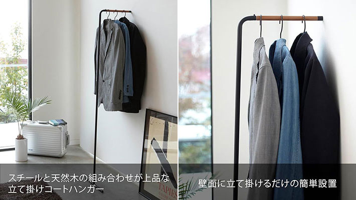 壁に立て掛けるだけで設置できる、省スペースなコートハンガーなんです。