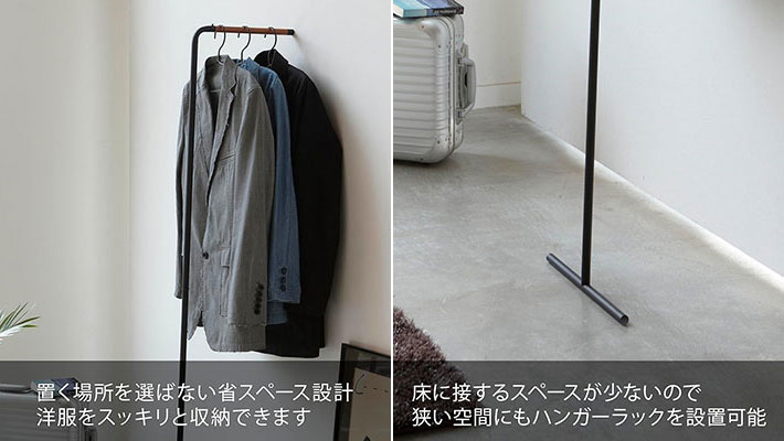 「ずいぶんシンプルなつくりだけど大丈夫?」と一見不安になりますが、壁に立て掛けることで衣類の荷重を支える仕様になっているので、意外と倒れづらく安定感があるんです。