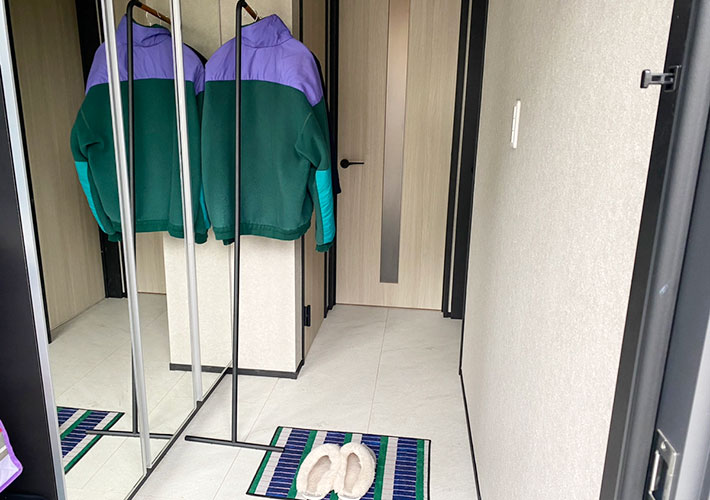 ・玄関に設置しています。軽いけど倒れることもなく、スタイリッシュなデザインで圧迫感がないところがお気に入り。