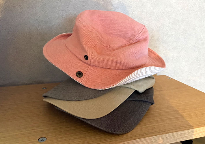 上着と同じく、置き場に困るのが帽子。うちの家族はキャップをよくかぶるので、数も多いんです。