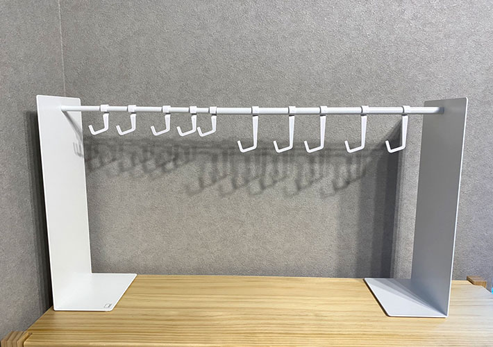 置く場所を選ばないので、壁とわずかなスペースさえあれば、玄関や洗面所、リビングなど、どこにでも上着が掛けられるようになるんです!