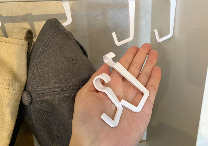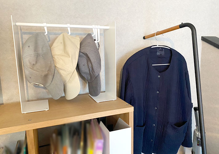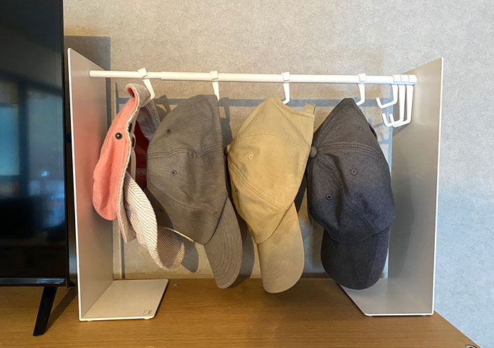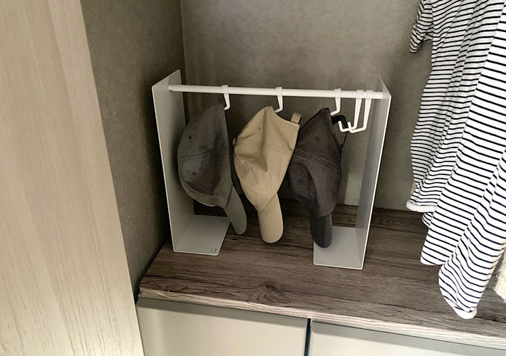 フックは好みの位置に設置でき、よく使う帽子もさっとストレスなく取り出せます。