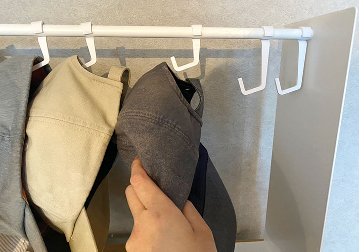 必要な時だけ出して、使わない時はしまっておけば邪魔にならない。上着の散らかりに悩んでいる人は、間違いなく買って損はない名品ですよ!