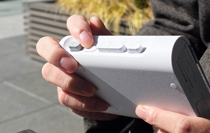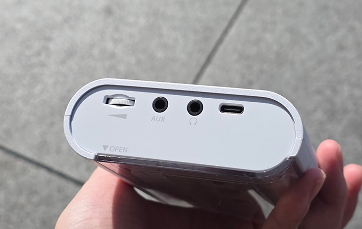 そもそもカセットテープ自体が大きいので、これ以上小さくするのは難しそうです。本体は全体的に丸みを帯びたデザインで、見た目ほど持ちにくさは感じませんでした。