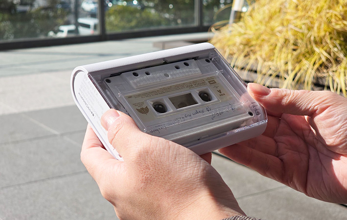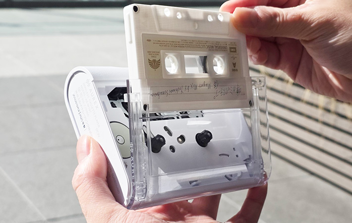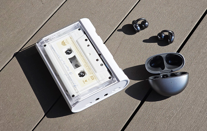 カセットテープとワイヤレスイヤホンの組み合わせは新鮮