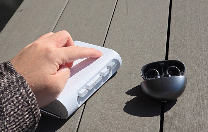 スピーカーは搭載されておらず、有線イヤホンかBluetooth接続したワイヤレスイヤホンから音を聴く仕組みです。