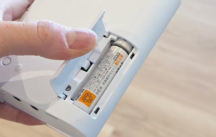 電源は単3電池2本、またはUSB給電の2Way。本体にバッテリーは内蔵されていないため、持ち歩くなら予備電池があると安心です。