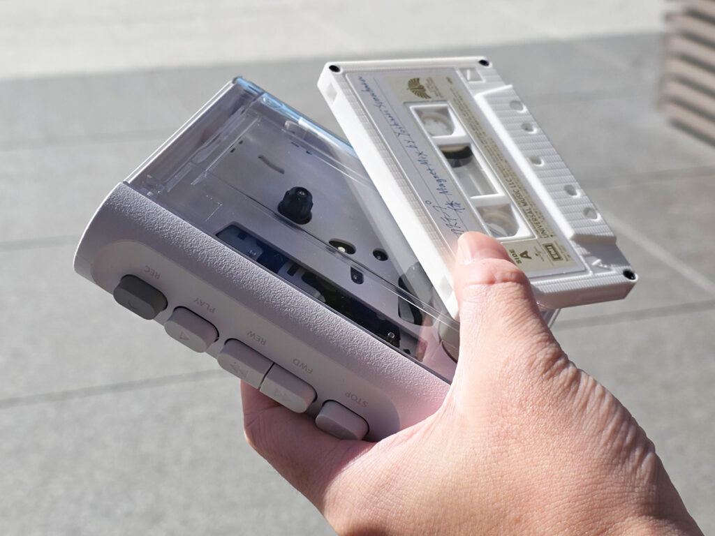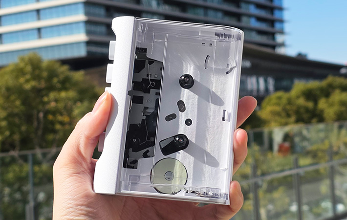 今回試したのは透明ボディのモデルなので、中で動いているカセットテープが丸見え。キュルキュルと回転するテープを眺めながら音楽を聴けます。