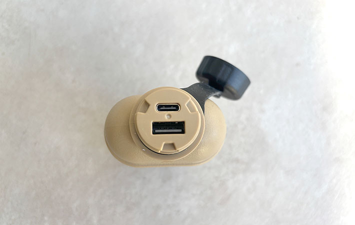 上部のスクリュー式キャップを外すと、USBポートが現れる仕様。