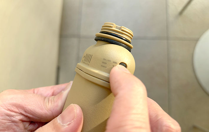 一度押すと『CHECK』モードになり、5段階のインジケーターで残量を確認できます。