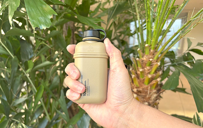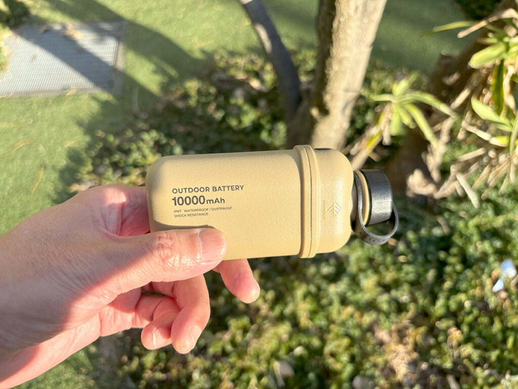 タフなアウトドアデザインに一目惚れ! 使うほど愛着が湧いたモバイルバッテリーがこちら ガジェット By - えぬわん 更新:2026-01-31 ※本記事はUPDATEが独自に制作したコンテンツです。また、本記事を経由して商品の購入が発生した場合に、ECサイト等から送客手数料を受領することがあります。 スマホの使用期間が2年を過ぎたあたりから、外出先でバッテリー残量が気になるようになりました。 モバイルバッテリーを探していた筆者が、数ある中から思わず手を止めたのが、『エレコム』の『NESTOUT モバイルバッテリー』です。 最初に惹かれた理由は、機能よりも見た目。アウトドアギアのようなタフなデザインと、落ち着いたアースカラーに一目惚れしてしまったのです。 アウトドアに特化した『NESTOUT』シリーズのモバイルバッテリー 『NESTOUT』はアウトドアに特化したブランド。屋外環境で使うことを前提に考えられた仕様が特徴です。 モバイルバッテリーの容量は、5000mAh、10000mAh、15000mAhの3種類がありますが、筆者が選んだのは10000mAhのモデル。 Amazonで見る 楽天市場で見る ・サイズ(約):幅6.1cm×高さ12.6cm×奥行き3.6cm ・重量(約):225g ・バッテリー容量:10,000mAh ・対応端子:USB-C×1、USB-A×1 1,800mAhのスマホなら、約3.3回分の充電が可能です。 USB-Cに対応しており、本体の充電時間も2時間45分ほど。短時間で充電できるのは嬉しいポイントです。 上部のスクリュー式キャップを外すと、USBポートが現れる仕様。 USB-AとUSB-Cを1つずつ備えています。 長さ18cmのケーブルが付属。もちろん、手持ちのケーブルもそのまま使えます。 雑に扱っても気にならない アウトドア基準のタフさ 見た目に惹かれて選んだとはいえ、実際に使ってみて実感したのはそのタフさ。 屋外のハードな環境でも耐え得るスペックを備えています。 端子部分はスクリュー式のキャップでしっかりと密閉でき、防水・防塵性能はIP67。 内部のリチウムイオン電池はシリコンクッションで保護されており、耐衝撃性にも配慮されています。 急な雨や、バッグの中での衝撃を気にせず持ち歩けるのは心強いポイントです。 モバイルバッテリー以上の使い方ができる拡張性 サイドのスイッチは、長押しで『ON/OFF』を切り替え。 一度押すと『CHECK』モードになり、5段階のインジケーターで残量を確認できます。 二度押すと『GEAR』モードになり、別売りのパーツを取りつけ可能に。 LEDランタンなどのアウトドアギアとして使えます。 Amazonで見る 楽天市場で見る バッテリーの底面にはネジ穴があり、ライトに付属しているミニ三脚を取りつければ、テーブルライトのように立てて使うことも可能。カラビナなどで吊り下げて使うこともできます。 ただのモバイルバッテリーで終わらない拡張性を備えているのも、『NESTOUT』ならではの特長です。 使うほどに愛着が湧く、『相棒』のようなモバイルバッテリー 使ってみて感じたのは、「長く使い続けられそう」という安心感です。 タフな作りだからこそ、慎重に扱いすぎる必要がなく、日常的に気負わず持ち歩ける存在。その気楽さが、結果的に使い勝手のよさにつながっていると感じました。 もちろん、アウトドアシーンに持って行けばかなり頼れるアイテムになるでしょう。 実用性重視で選びがちなモバイルバッテリーの中で、デザイン性を兼ね備えた『NESTOUT モバイルバッテリー』は、持っているだけで少し気分が上がり、使うほどに愛着が湧いてきます。 アウトドア好きな人へのちょっとしたプレゼントにも喜ばれるのではないでしょうか。 Amazonでエレコム『NESTOUT モバイルバッテリー』 10000mAh を見る 楽天市場でエレコム『NESTOUT モバイルバッテリー』 10000mAh を見る [文・構成/UPDATE編集部] 出典 Amazon/楽天市場 関連ワード エレコムモバイルバッテリー検証 この記事をシェアする Share Post LINE