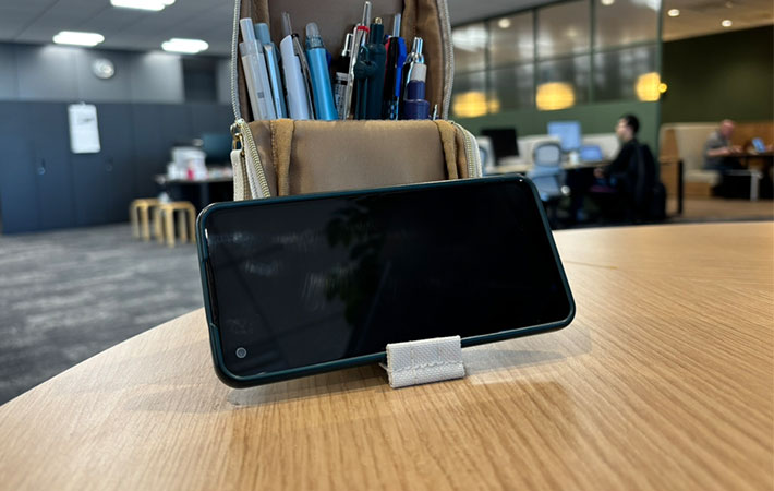 ペンケースだけでなく、スマホスタンドとしても使えると、限られたスペースをさらに有効活用できそうですね。