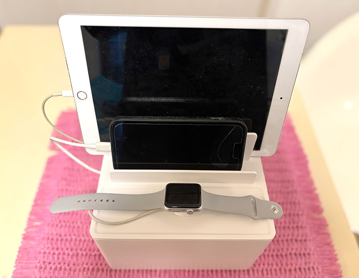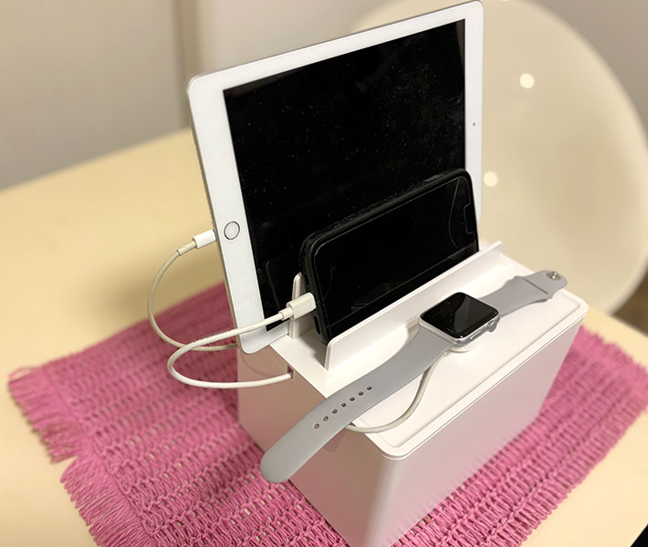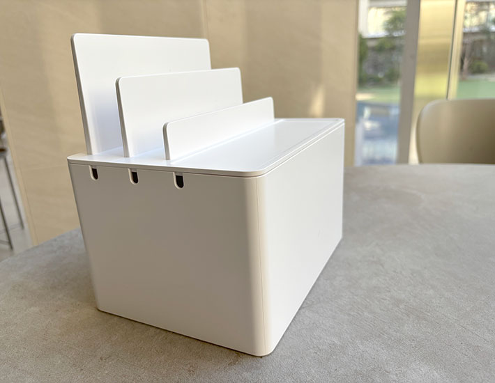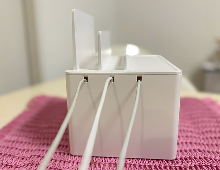 山崎実業の『充電ステーション』を使い始めてから、散らかりがちだった充電まわりがすっきりと整理されました。