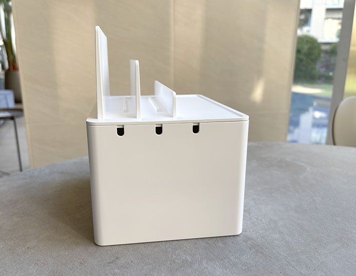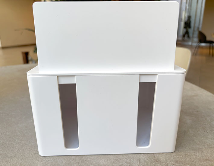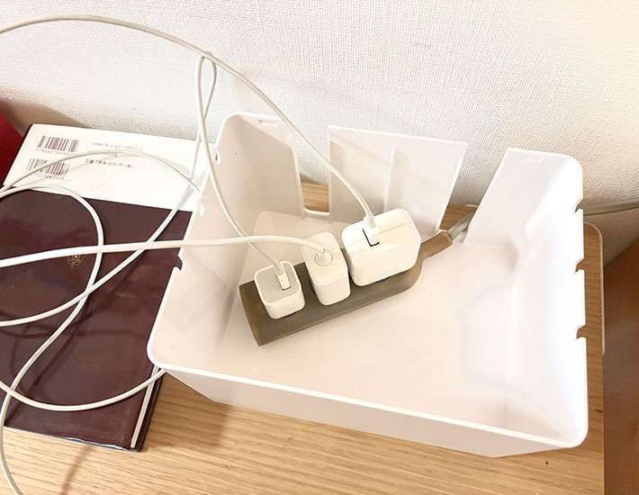 一見するとシンプルな収納ボックスですが、中には電源タップや充電器をまとめて収められる設計になっています。