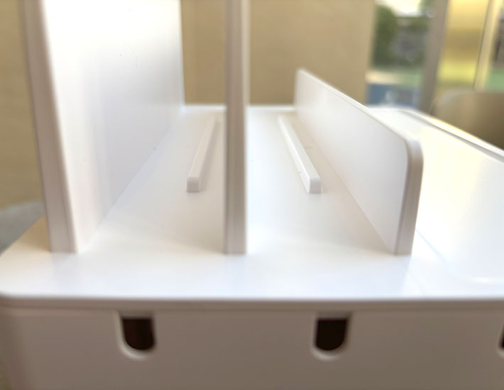 スタンドの間には突起があり、デバイスを立てかける角度を調整できるようになっています。
