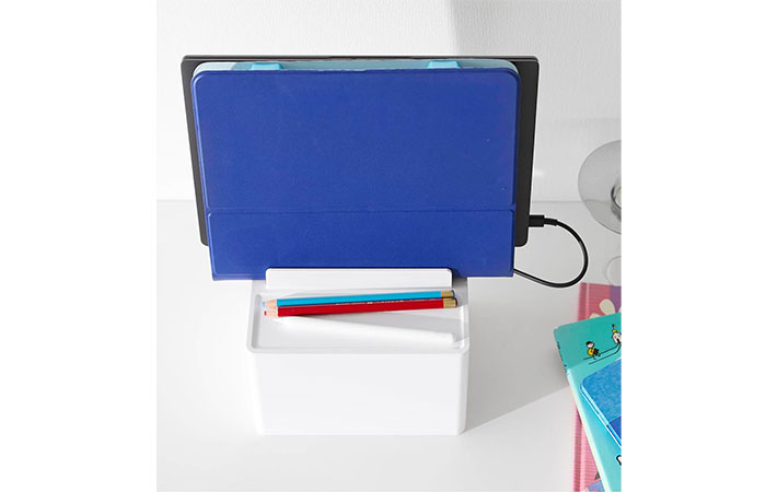 ・iPadやiPhoneの置き場にちょうどよく、充電ケーブルをきれいにしまえるので、部屋がスッキリ。