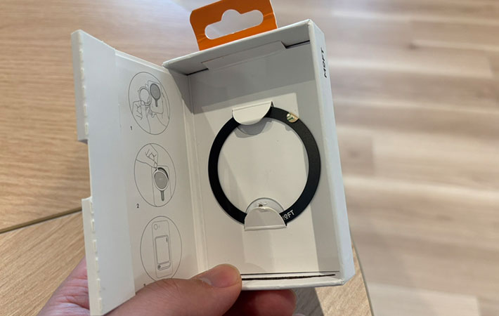 『MOFT 8-in-1 多機能スタンド』にはメタルリングが付属しているので、これをスマホ本体やスマホケースに貼りつければOKです。