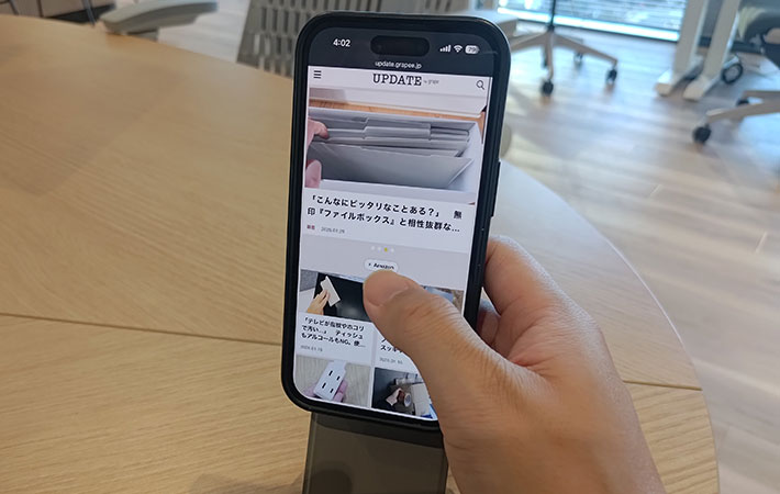 そんな時に意外と場所を取るのがスマホです。片手で持てるとはいえ、デスクの上に置くと意外と大きく、場所を取ってしまいがち。