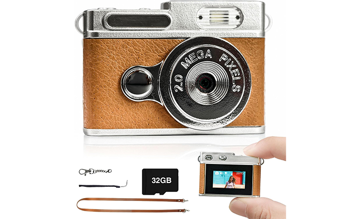 小型デジタルカメラ ミニレトロデジカメ 1080P 0.96インチ画面 携帯便利 キーホルダーセット 初心者 32GBカード付属 TYPE-C充電式 日本語取扱説明書(ブラウン)