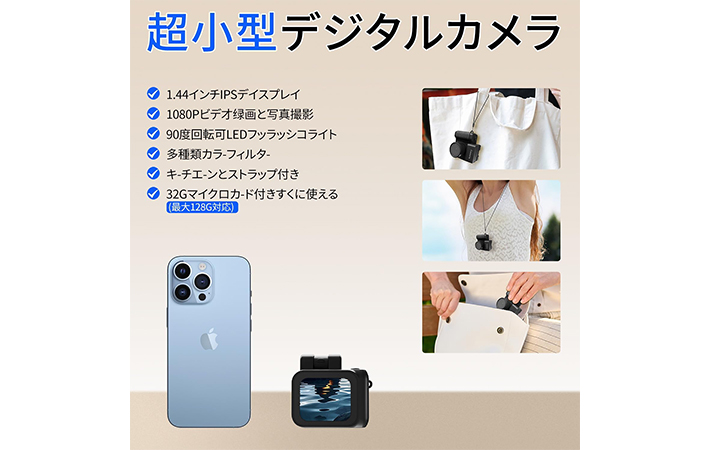 写真、動画、音声の撮影ができることをはじめ、1.4インチのディスプレイ、1週間程度使えるロングバッテリー、夜間撮影ができるフラッシュなどハイスペックです。
