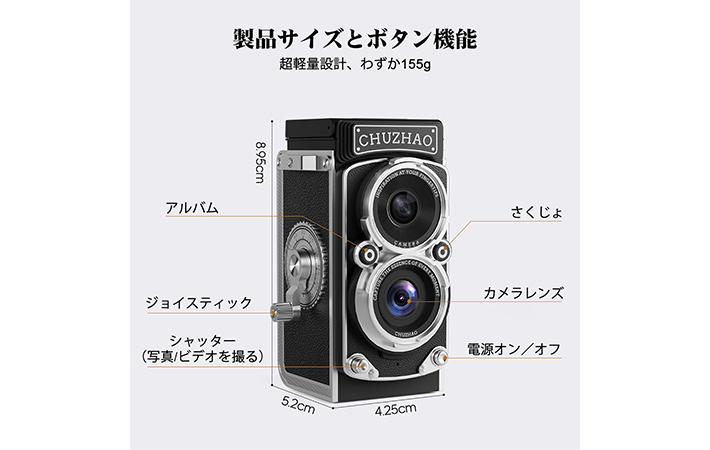 「一目惚れして買いました」「このヴィンテージスタイルがたまんない」という声が多いのが『CHUZHAO』のトイデジです。