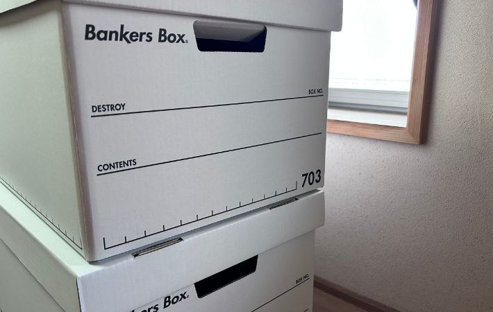 「オシャレな家によくあるやつ!」 出しっぱなしでもカッコいい『白い箱』が見た目以上に優秀でした ホーム・キッチン By - shio 更新:2026-02-08 ※本記事はUPDATEが独自に制作したコンテンツです。また、本記事を経由して商品の購入が発生した場合に、ECサイト等から送客手数料を受領することがあります。 「とりあえずここに置いとこ」が積み重なって、気づけば部屋の隅に書類と段ボールの山が…。 年末の忙しさを言い訳に、整理整頓を後回しにしていたら、いつの間にかごちゃっとした空間が誕生していました。 そこで今回、「片づけに役立ちそう!」とお迎えしたのが『フェローズ バンカーズボックス 703S(白/黒)』です。 Amazonで『フェローズ バンカーズボックス 703S 白/黒 3個1セット』を見る 楽天市場で『フェローズ バンカーズボックス 703S 白/黒 3個1セット』を見る 収納ボックスって便利だけど、出しっぱなしにすると生活感が出がち。 このボックスは見た目がとにかくおしゃれで、インテリアになじむんです…! そんな口コミがたくさん寄せられていたので、期待を込めて、実際に使って整理してみました。 目次 1. フェローズ バンカーズボックスとは? 703Sの特徴・スペック2. 実際に組み立ててみた3. 書類や本を入れてみた|積み重ねてもへっちゃら?3.1. まずは散らばっていたファイルや書類3.2. 書籍を入れてもOK?3.3. 積み重ねてみた結果…4. 片づけてみて感じたメリット4.1. ごちゃっとした空間が一気に「整って見える」4.2. 余白があるから管理がしやすい4.3. 箱自体が軽くて扱いやすい5. 気になった点も6. まとめ フェローズ バンカーズボックスとは? 703Sの特徴・スペック ・サイズ(約):幅33cm×奥行38cm×高さ25.5cm ・仕様:積み重ね5段まで、耐荷重:30kg(重量キログラム)/1箱 ・商品内容:ボックス本体×3、フタ×3 『バンカーズボックス』は、1917年に『フェローズ』が創業して以来、世界中で長く愛されているロングセラーの収納ボックス。 今もなお、オフィスや銀行や、教育機関などの幅広い場所で使われています。 日本では1999年からA4規格を中心に展開され、その収納力と頑丈さ、白を基調としたシンプルなデザインで人気に一気に火がつきました。 そんなボックスの外観から構造までを全体的に見直したモデルが今回ご紹介する『バンカーズボックス 703S』です。 歴代シリーズの象徴でもあったグリッド(格子柄)をあえてなくし、よりミニマルでモダンな印象にアップデートされたこちら。 箱の構造も1から再設計されており、組み立てがわずか数秒で完了するように作られています。 筆者 重たいものを入れても大丈夫なように耐荷重性能もアップしているとのことです! さらに、取っ手の位置のズレも見直され、持ち運びやすさも向上。 箱の表面には、中身の内容を自由に書き込んだり、カスタムできたりする余白が多めに確保されています。 筆者 付箋やラベル、マスキングテープをまっすぐきれいに貼れるようにガイドも設けられていますよ。 実際に組み立ててみた ここからは、実際に『バンカーズボックス 703S』を組み立ててみた様子を紹介します。 「たった数秒で組み立てられる」とのことですが、不器用な筆者でも本当に簡単にできるのか…検証してみました! まずは左右の辺を内側に折り込むように広げます。 これだけで、あっという間に箱の形に! 組み立て方がイラストで描かれている、底面をパタンと下に折り畳めば、箱ができあがります。 次に折り目に沿って蓋を組み立てましょう。 こちらも簡単。あらかじめ折り線がついているから感覚で組み立てられます。 箱に蓋を被せれば、ボックスの完成です! シンプルな手順なので、迷わず組み立てられました。 取っ手部分は、あらかじめ切り込みが入っていて、自分で穴を開けて使うタイプです。 組み立てには力もほとんどいらず、誰でもスムーズにできるはずですよ。 筆者 2箱目からは本当に1分以内で組み立てられましたよ! 書類や本を入れてみた|積み重ねてもへっちゃら? 箱が組み立てられたところで、書斎を片づけることに! 本棚に収まり切らず、部屋の隅に追いやられていた『ごちゃっとゾーン』をなくします。 積み重なった書類や書籍、中身がよく分からない段ボールたち…。 「後でやろう」と放置していたものをまとめて整理するため、断捨離しつつ、必要なものだけ『バンカーズボックス 703S』に入れたいと思います。 まずは散らばっていたファイルや書類 最初に入れたのは、クリアファイルに入れたまま放置していた書類たち。 手紙や取扱説明書、保健や仕事関係の書類、役所でもらった紙など、サイズや内容はバラバラです。 とりあえずいらないものだけは処分して「この箱に入る分だけ入れる」と決めてどんどんまとめていきました。 箱がしっかり自立しているおかげで途中で形が崩れたり、ふにゃっと倒れたりしないのが地味に助かりますね。 書籍を入れてもOK? 次に、本や雑誌もまとめて収納します。 紙類よりさらに重さが出るので
