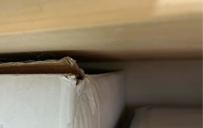 段ボール収納だと、このように上に重ねると少しずつ歪んでいったり、角が潰れて見た目が残念になったりしますよね。