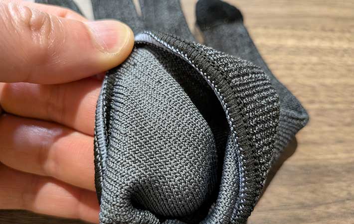 生地はインナーとして使いやすいようにわりと薄手の仕様。蓄熱インナーグローブだけで防寒対策ができるほどの厚みはありません。