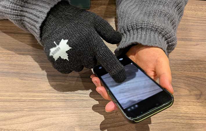 親指、人差し指、中指の3本の指先には、手袋をつけたままでもスマホを操作できる素材を使用。