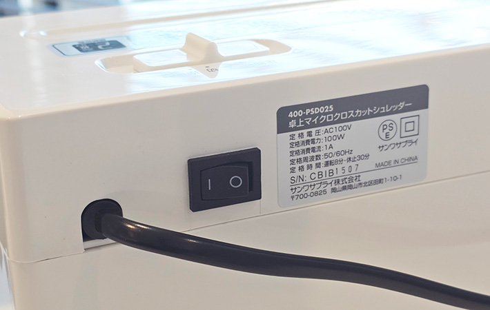 筆者が最近使っているのは、『サンワサプライ』の『400-PSD025』というシュレッダー。