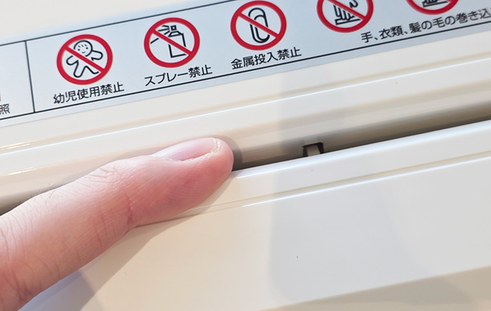 紙を差し込むと自動で細断が始まり、細断が終わると自動停止するのも地味に便利。ボタンを操作する必要がなく、書類を入れるだけなので扱いもシンプルです。