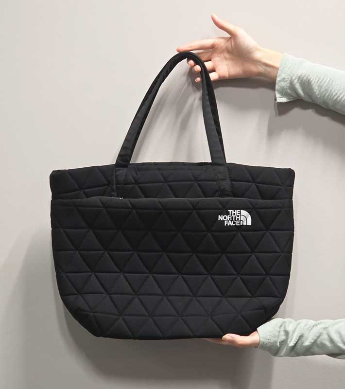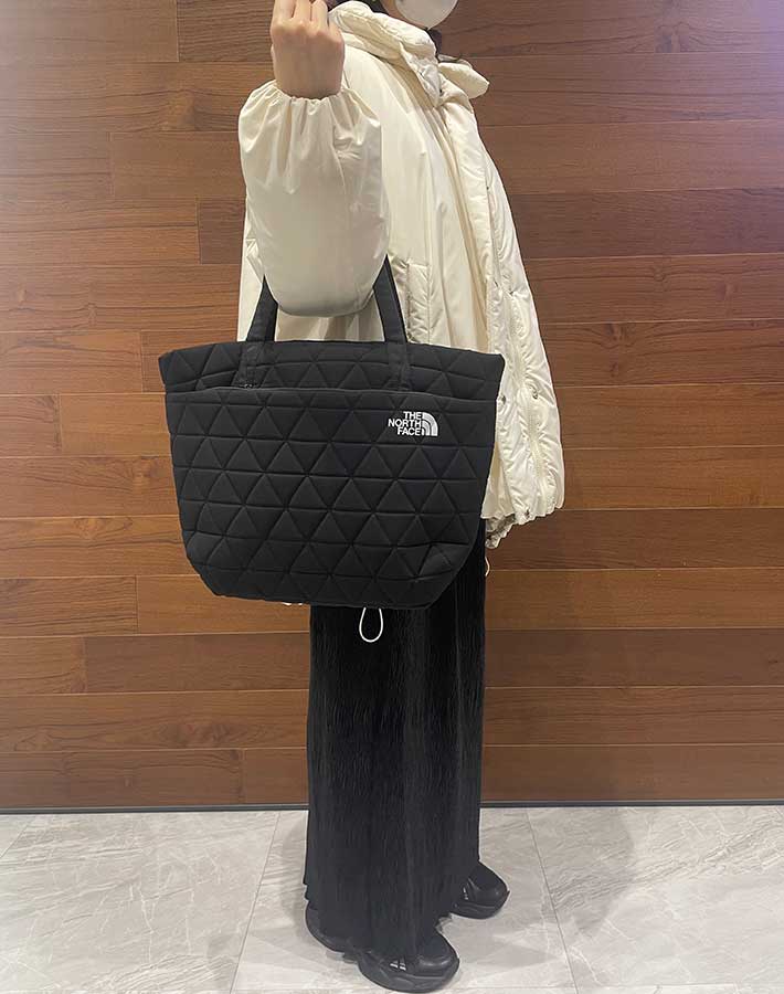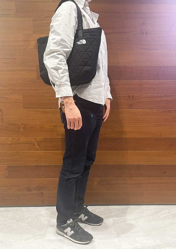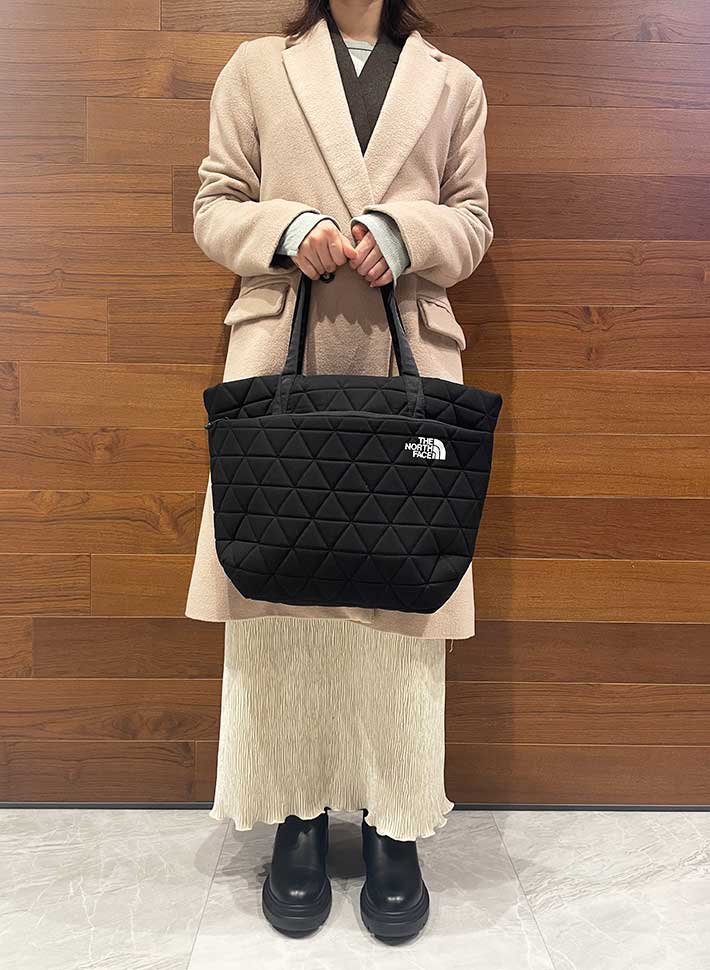 通勤の「神バッグ」見つけました!超軽量&6つのポッケで荷物が迷子にならないノースフェイス『ジオフェイストート』 ファッション By - UPDATE編集部 更新:2026-02-09 ※本記事はUPDATEが独自に制作したコンテンツです。また、本記事を経由して商品の購入が発生した場合に、ECサイト等から送客手数料を受領することがあります。 筆者が思う理想の通勤用バッグの条件は4つ。軽くて疲れにくく、ノートPCを安心して持ち運べて、荷物が中でごちゃつかず、デザインがシンプルなことです。 欲を言えば、「休日も活用できたら最高だな~」と思っています。 「でも、それでいておしゃれなバッグってなかなかないんだよな…」と悩んでいたところ、『THE NORTH FACE(以下、ノースフェイス)』で最強アイテムに出会いました! 平日朝のQOLを底上げする『ジオフェイストート』 電車通勤の強い味方!ノートPCも小物もスマートに収納できる軽量トート Amazonで見る 楽天市場で見る 筆者が通勤用におすすめしたい、ノースフェイスのバッグがこちらの『ジオフェイストート』。 ジオフェイストート 基本スペック ・サイズ:縦30.5cm×幅27cm×マチ12cm ・容量:15L ・重量(約):330g ・収納箇所:6か所 実際に持ってみてまず驚くのがその軽さです! どれくらい軽いかというと、同じサイズの一般的なレザートートの半分以下の重量で、通勤時の肩への負担を軽くしてくれます。 大きさは、A4書類や13インチのノートPCがすっぽり収まるサイズ感。 キルティング生地でクッション性があり、ノートPCやガジェット類を入れる時も安心感があります。 主張しすぎず、でも目に留まるノースフェイスのロゴも、ブランドファンには嬉しいですよね! 定位置が決まる収納設計で、探すストレスから解放! 収納は、13インチのノートPCが収まるメイン収納を含め、計6つ。 ノートPCやスマホ、財布などの定位置を決められるので、しまった場所が分かりやすく、迷わず取り出せてストレスフリーになります。 1.メイン収納 メイン収納の中にはポケットが2つあります。 小さめのポケットはハンカチ、ティッシュ、名刺入れなどにちょうどいい! もう1つは、タブレットや小さなノートの収納にぴったりのサイズ。トグルボタン付きで、中身が飛び出しにくいつくりです。 2.前面収納 前面には2か所の収納が。 ファスナー収納があるので貴重品も安心です。 ファスナー上のミニポケットは、リップや香水、目薬、お菓子など、ささっと取り出したい小物を入れるのにいいですね。 3.背面収納 背面にも深めのポケットがあります。 こちらは、折り畳み傘や水筒などにいいと感じました。 やや荷物多めな筆者の通勤用グッズも、すっぽり収納できました! 通勤用グッズ一覧 ・折り畳み傘 ・ノートPC(13.3インチ) ・ペンケース ・財布 ・スマホ ・ティッシュ&ハンカチ ・名刺入れ ・ガジェット用ポーチ ・ノート用ポーチ ・文庫本 こまごました荷物も含め、きれいに収まって気持ちいい~!! マチがあり自立しやすいのも、オフィスワーカーには嬉しい点です。 朝の服装選びに悩まない!どんなコーディネートにもマッチ シンプルなデザインで、服装を選ばず合わせやすいのもおすすめポイント。 カジュアル系の服装にはもちろん合います。 そして、きれいめの服装にもマッチしました。 ジオフェイストートを通勤バッグにすれば、仕事の日もワードローブの服を幅広く楽しめそうですね! ブラック以外にもホワイト、グレー、カーキなど、さまざまなコーディネートに馴染む優秀なカラーが揃っていますよ。 ビンテージホワイトをAmazonで見る ビンテージホワイトを楽天市場で見る フォールンロックをAmazonで見る フォールンロックを楽天市場で見る クラシックカーキをAmazonで見る クラシックカーキを楽天市場で見る ジオフェイストートは男性も使える? 男性でも使いやすいのかを検証したところ、デザインは男性にもマッチ! ただし、肩にかけたときの窮屈さがやや気になるかもしれません。特に上着がいる季節は、肩かけは使いにくそうです。 男性の場合は手持ちで使ったり、通勤用ではなくサブバッグとして活用するのがよさそうですね。 飛行機の機内用に、観光用に…旅行のサブバッグにも推せる 軽量性、収納性ありとなれば、旅先でも活躍間違いなし! 機内持ち込み時にノートPCや本を入れてもいいですし、現地での街歩き用にも役立ちます。 シンプルなデザインだから、旅行中の記念撮影時に持っていてもスマートな姿が残せそう。 自立しやすいつくりで、移動中も邪魔になりにくいですよ。 収納力があるので、暖かい時期の一泊旅行のメインバッグとしても活用できそうです! ノースフェイス『ジオフェイストート』の気になる点 こちらのトートバッグ、メイン収納にファスナーや留め具がない点が少し気になりました。 貴重品を多く持ち歩く方や、衝撃で中身が飛び出しやすいため、自転車通勤にはあまり向かないかもしれません。 バッグインバッグを活用することで、より安心して