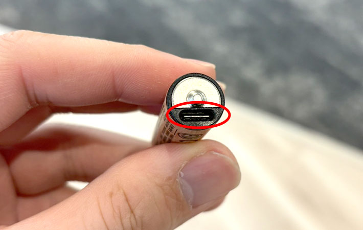 乾電池では見慣れない謎の穴が。そう、これこそがUSB-C差込口なのです。
