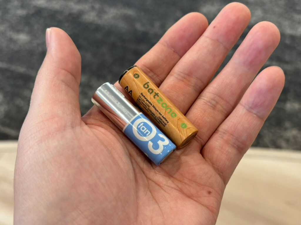 外見は乾電池そのものですが、重さは『batzone リチウムイオン充電池 単3』のほうが軽い印象。