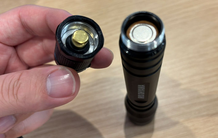 金属製のボディはかなりしっかりとしている印象。それもそのはず、『LEDハンディライト ズーム機能付き』は防水規格IPX4に対応しているのです。